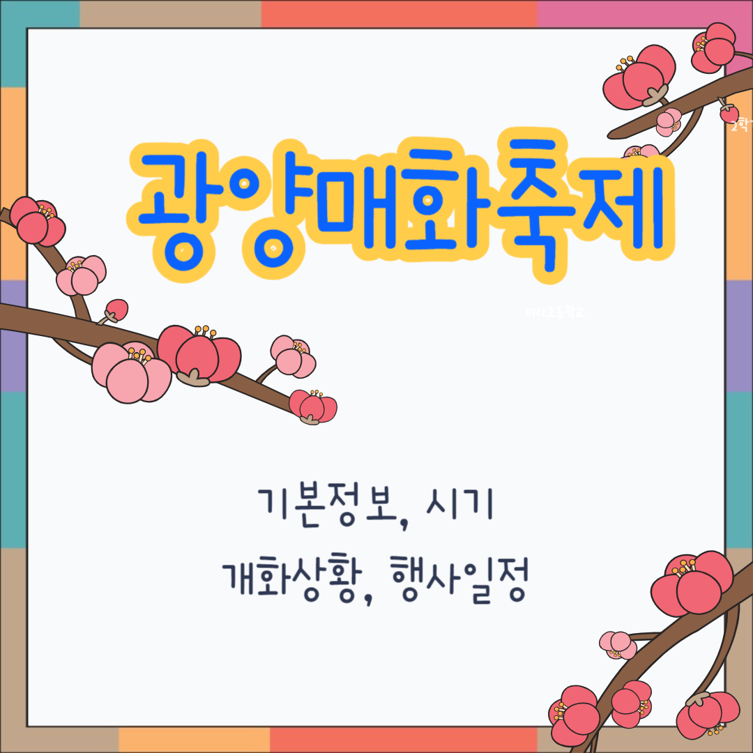 볼거리와 먹거리, 즐길거리가 가득한 광양매화축제 알아보시고 혜택 받으시기 바랍니다.