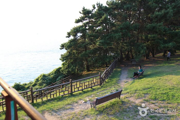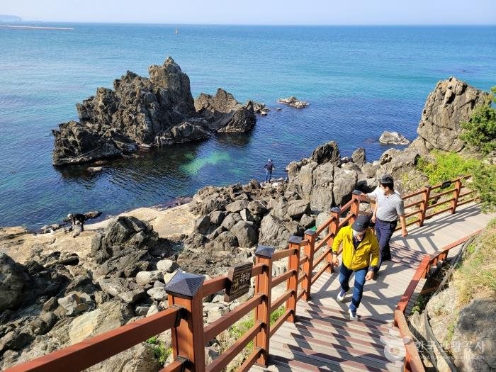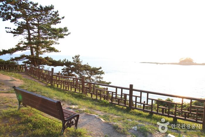 산책로를 따라 정상에 오르면 상쾌한 해풍과 함께 탁 트인 바다 풍경과 맹방해변, 덕산해변을 한눈에 감상할 수 있습니다.