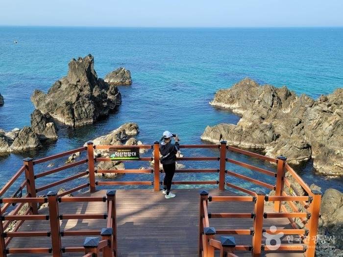덕봉산을 둘러싼 산책로는 비교적 오르기 쉬운 등산길로 잘 정비되어 있으며 대나무 숲이 우거진 산책로를 따라 전망대로 올라가는 내륙코스(317m)와 해상 기암괴석을 감상할 수 있는 해안코스(626m)로 구성되어 있습니다.