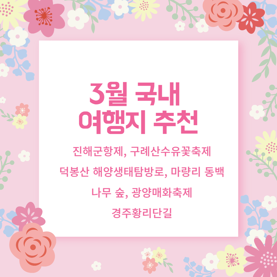 봄을 상징하는 아름다운 꽃구경부터 다양한 국내여행지를 소개해드리겠습니다.